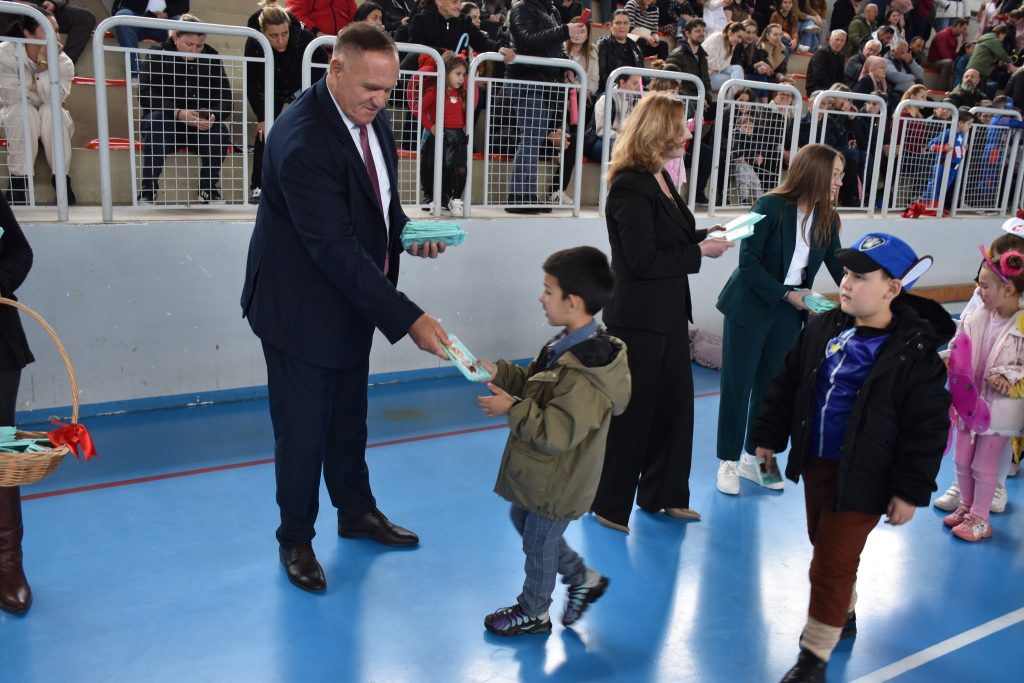Градоначалникот на Општина Петровец, Борче Митевски, денеска во спортската сала во Петровец, заедно со претседателот на Советот, Жарко Крстевски, и советничката Драгана Узелац, поделија 1.000 чоколади на сите учесници по повод Првоаприлскиот ден.
